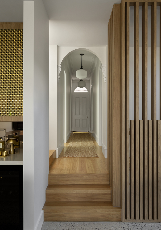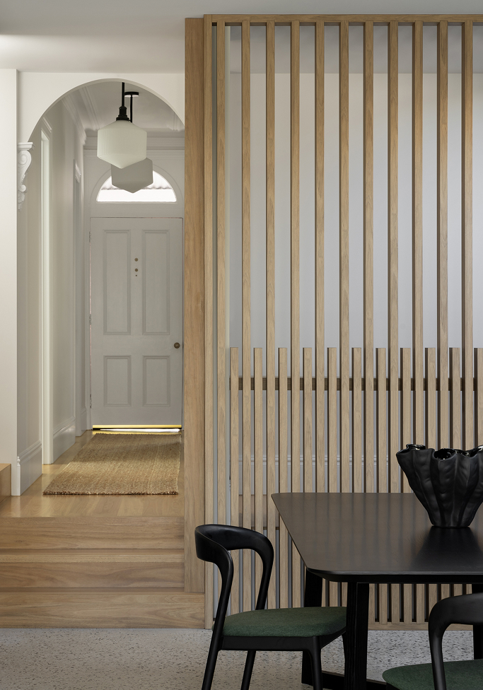 The material selection for the new extension is deliberately bold, contrasting with soft toned areas to create a refreshing private oasis within a high-density inner city setting. The heritage past now truly meets the contemporary future.